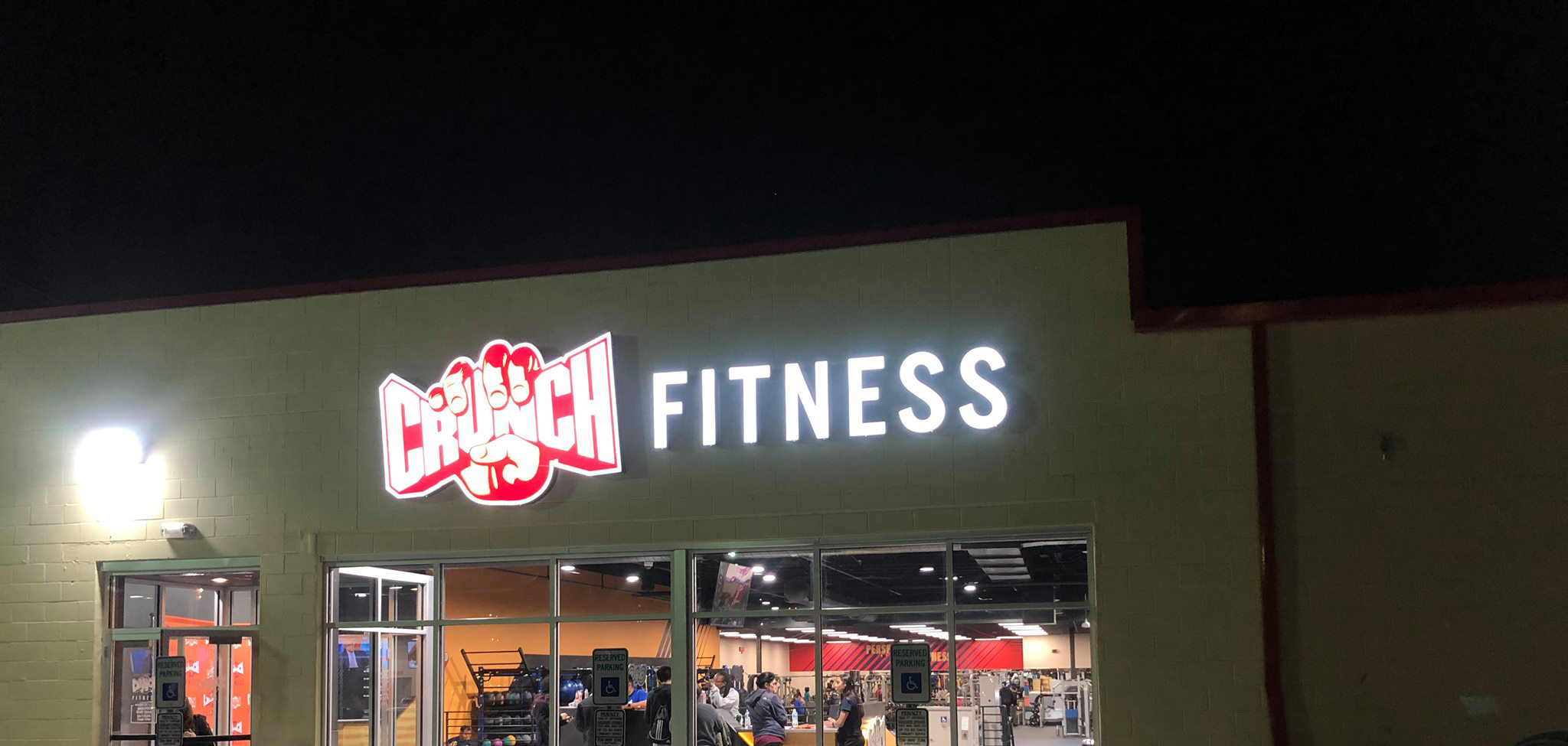 Crunch Fitness - Sign Details: - Illuminated Sign Cabinet with Channel Letters, Banners, Vinyl Lettering, Directional Signs